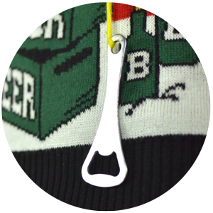 In the same “Christmas madness” line, this year we’ve added a new model: a 3D Christmas jumper with a beer pocket. Yes, that’s right: a pocket to keep your beer cold while you take care of other important duties: opening all your friends’ beers with the 3D Christmas jumper beer opener, for example. All thought out, so the party doesn’t stop!